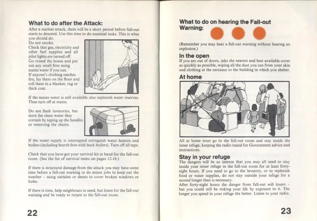 We had an interesting discussion about why such a brochure has not been issued in the UK, and what the reaction would be if a similar one was released. The last time the British government released such a pamphlet was in 1980. Protect and Survive showed citizens what to do in event of a nuclear attack, though a lot of the advice focussed on building a shelter from an old door, or a kitchen table.
