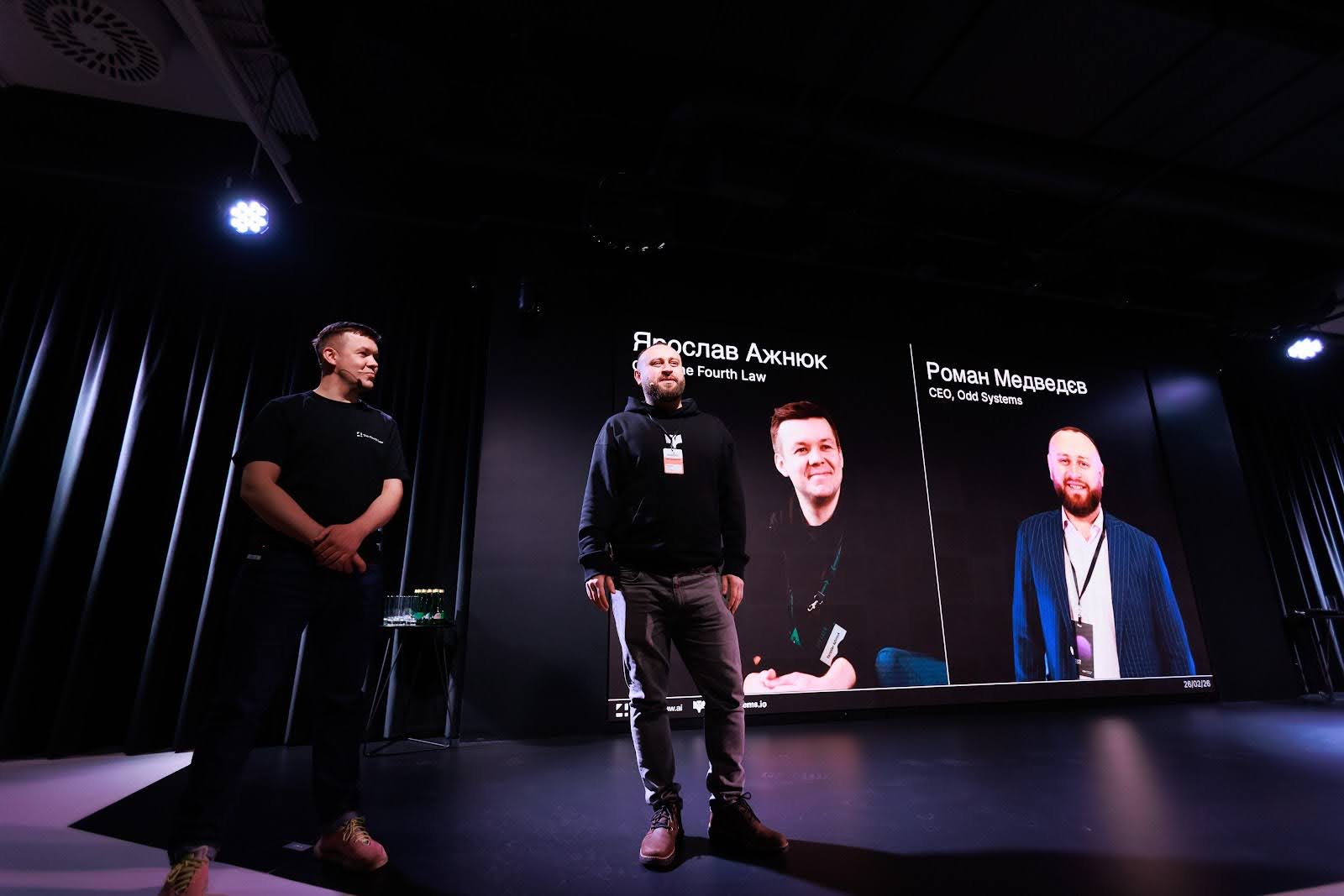 Azhnyuk outlined The Fourth Law’s roadmap for autonomous systems across air, land, and sea domains, arguing that these platforms are capable of altering the course of the war over the next year. He showed footage from successful combat missions and teased a series of new products, with formal releases expected soon.