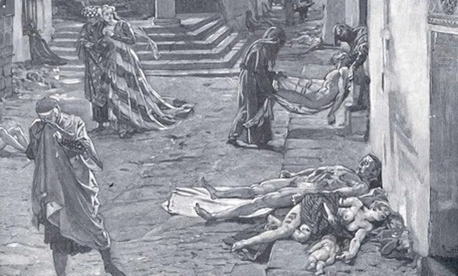 But a defining feature of humans is their resilience. To us now it seems obvious that we survived the Plague, but to people at the time it must have seemed incredible that their society continued afterwards. Indeed, many takes on the effects of the Black Death are that it had a positive impact in the long term. Well summed up here: “By targeting frail people of all ages, and killing them by the hundreds of thousands within an extremely short period of time, the Black Death might have represented a strong force of natural selection and removed the weakest individuals on a very broad scale within Europe,“ …In addition, the Black Death significantly changed the social structure of some European regions. Tragic depopulation created the shortage of working people. This shortage caused wages to rise. Products prices fell too. Consequently, standards of living increased. For instance, people started to consume more food of higher quality.”