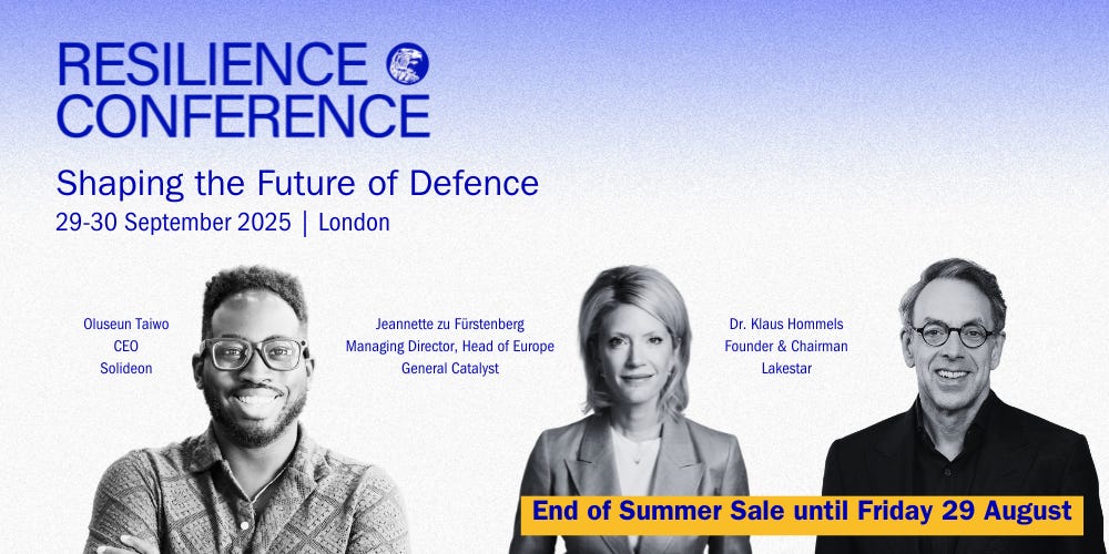 Elsewhere on Resilience Media this week, Kraken teams up with NVL, Fire Point’s Flamingo missile flies 3,000+ km, and we’re running an End of Summer sale on Resilience Conference tickets. Grab one today and I’ll be back in your inbox next week.
