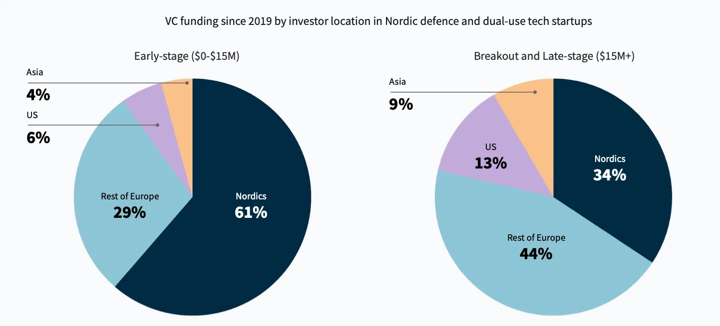 On the investor side, the report shows a clear shift. Nordic funds supply more than 60 percent of early-stage capital in the sector. Once rounds get larger than 15 million dollars, that share drops to about a third, and European and US funds move in. New specialist funds such as Final Frontier, T|Y|R, Varangians, and others are trying to change that, but they are young and still raising their own capital.