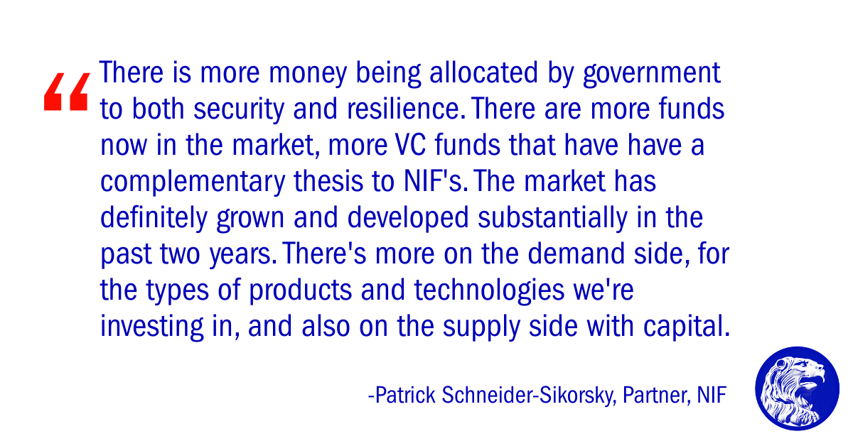 There is more money being allocated by government to both security and resilience. There are more funds now in the market, more VC funds that have have a complementary thesis to NIF’s. The market has definitely grown and developed substantially in the past two years. There’s more on the demand side, for the types of products and technologies we're investing in, and also on the supply side with capital.