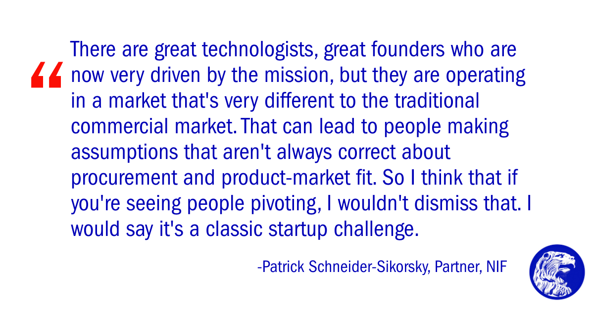 There are great technologists, great founders who are now very driven by the mission, but they are operating in a market that's very different to the traditional commercial market. That can lead to people making assumptions that that aren't always correct about procurement and product-market fit. So I think that if you're seeing people pivoting, I wouldn't dismiss that. I would say it’s a classic startup challenge.